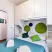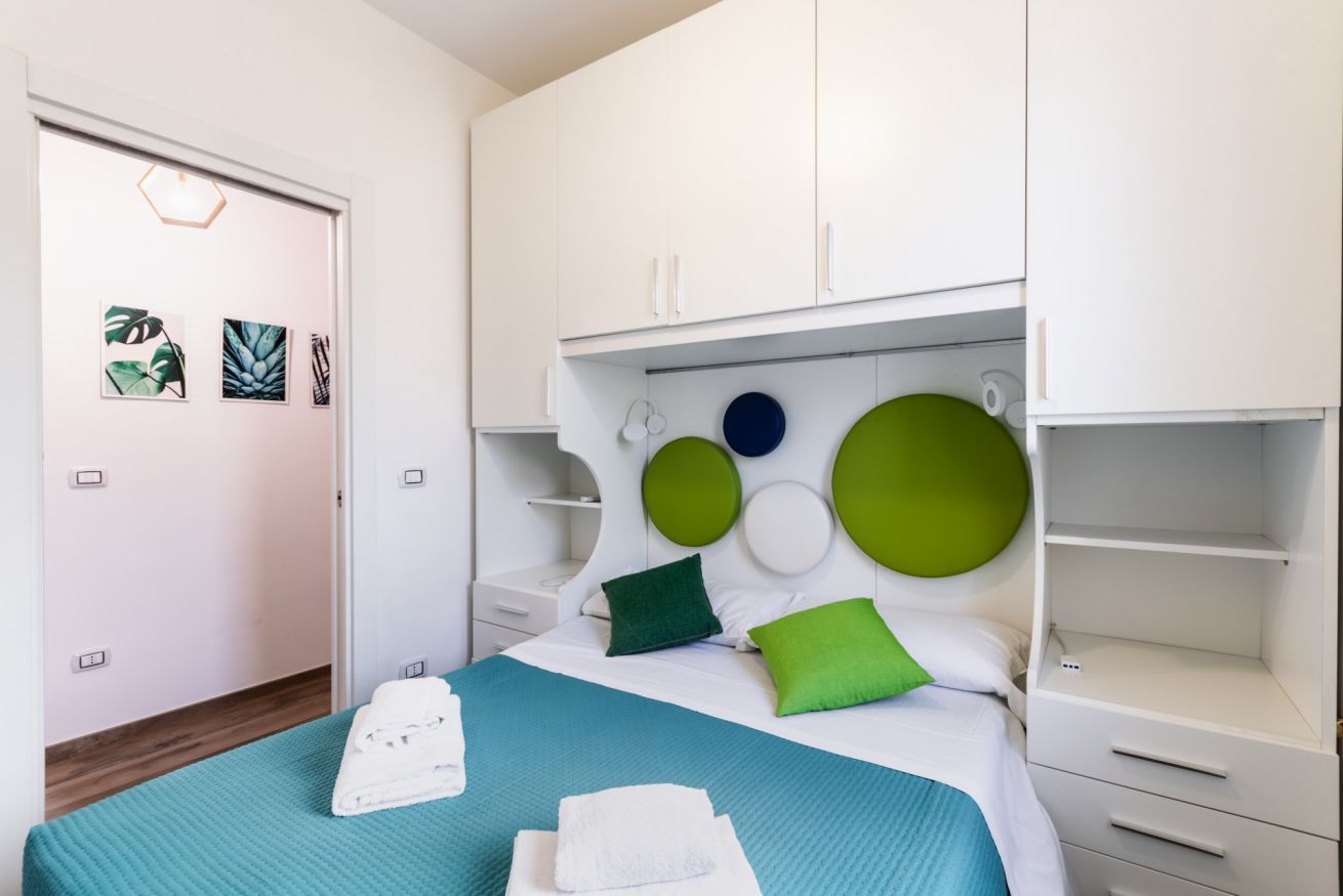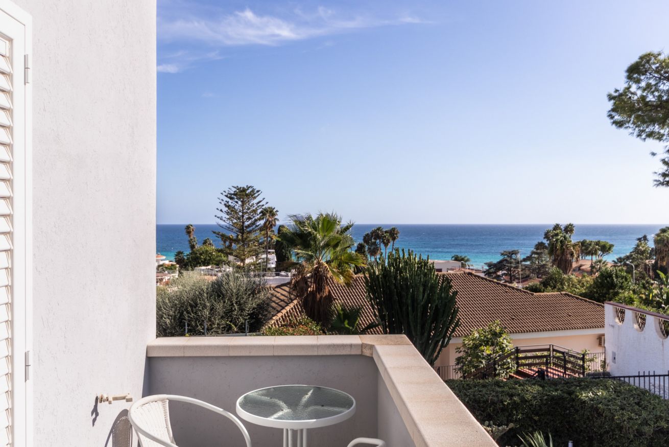 Al primo piano si sviluppa la zona notte, composta da due camere matrimoniali con balcone vista mare e da una terza camera con letto alla francese. Due bagni ampi e moderni assicurano praticità e comfort a tutti gli ospiti. Dal primo piano, una scala a chiocciola conduce alla terrazza panoramica con vista mare, perfetta per godersi la brezza e i colori del tramonto.