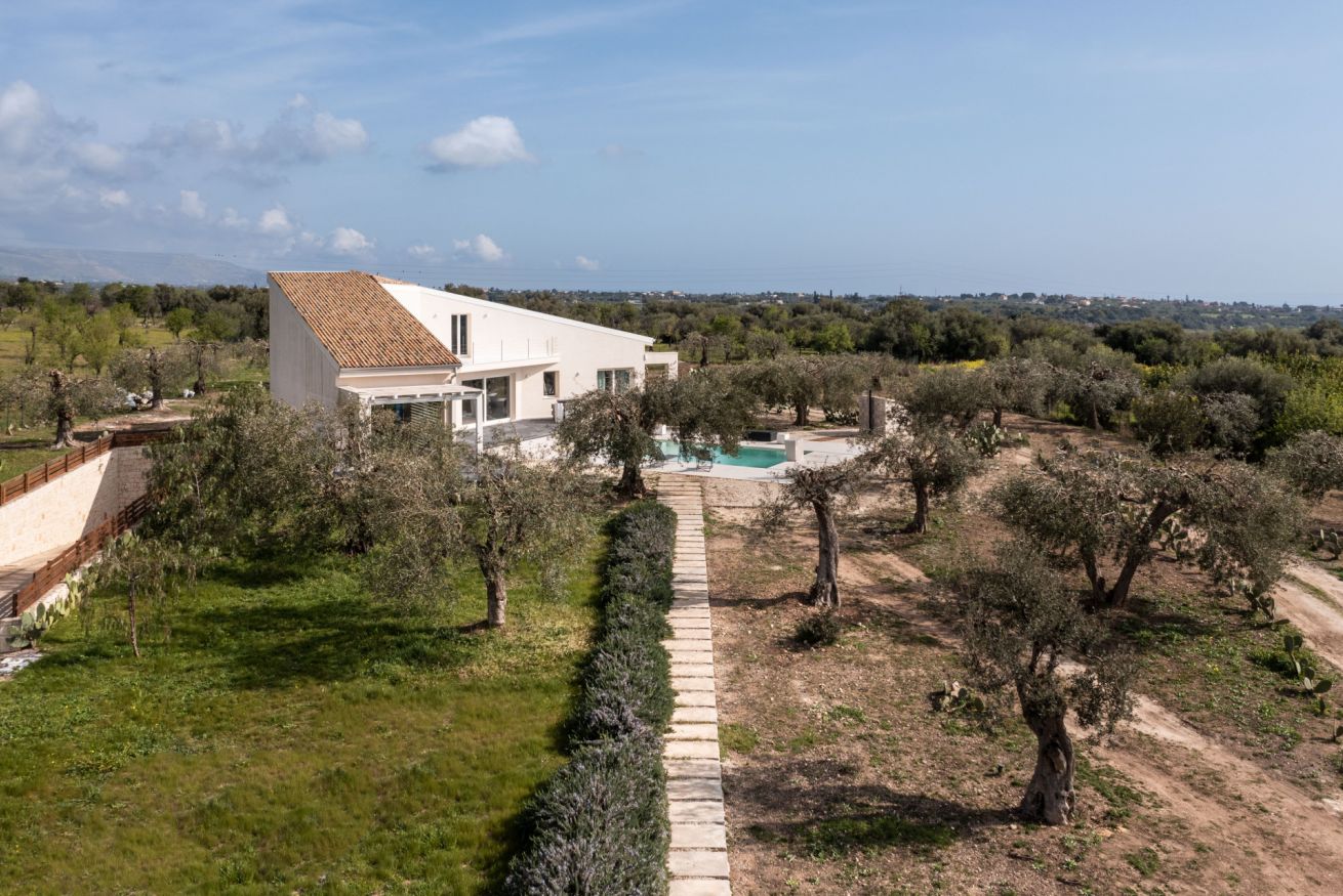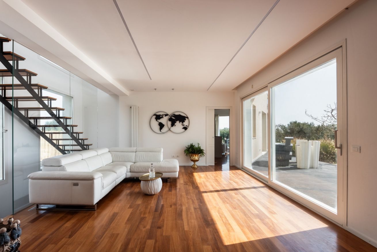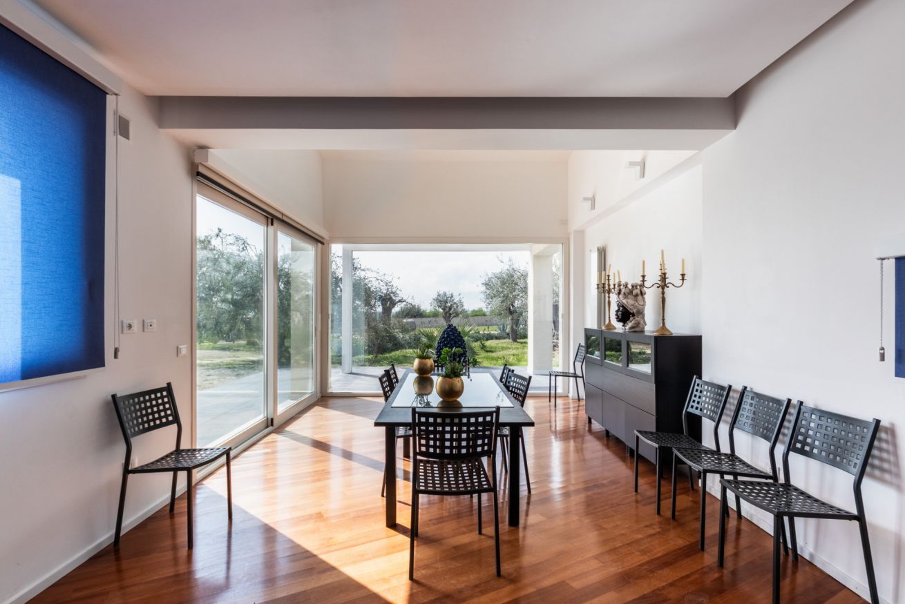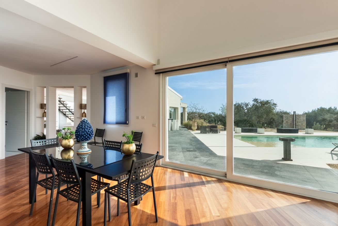 Pensata per garantire il massimo della privacy e del relax, la villa accoglie i suoi ospiti in ambienti ampi e luminosi, dove la luce naturale e il paesaggio circostante diventano parte integrante dell’esperienza. Le grandi aperture verso l’esterno regalano panorami suggestivi e creano una continuità fluida tra gli spazi interni, eleganti e raffinati, e la bellezza della natura mediterranea.
