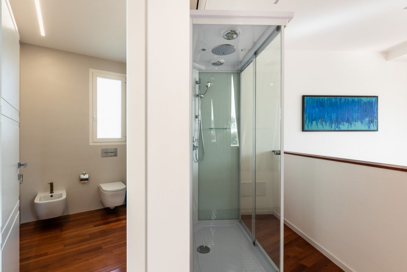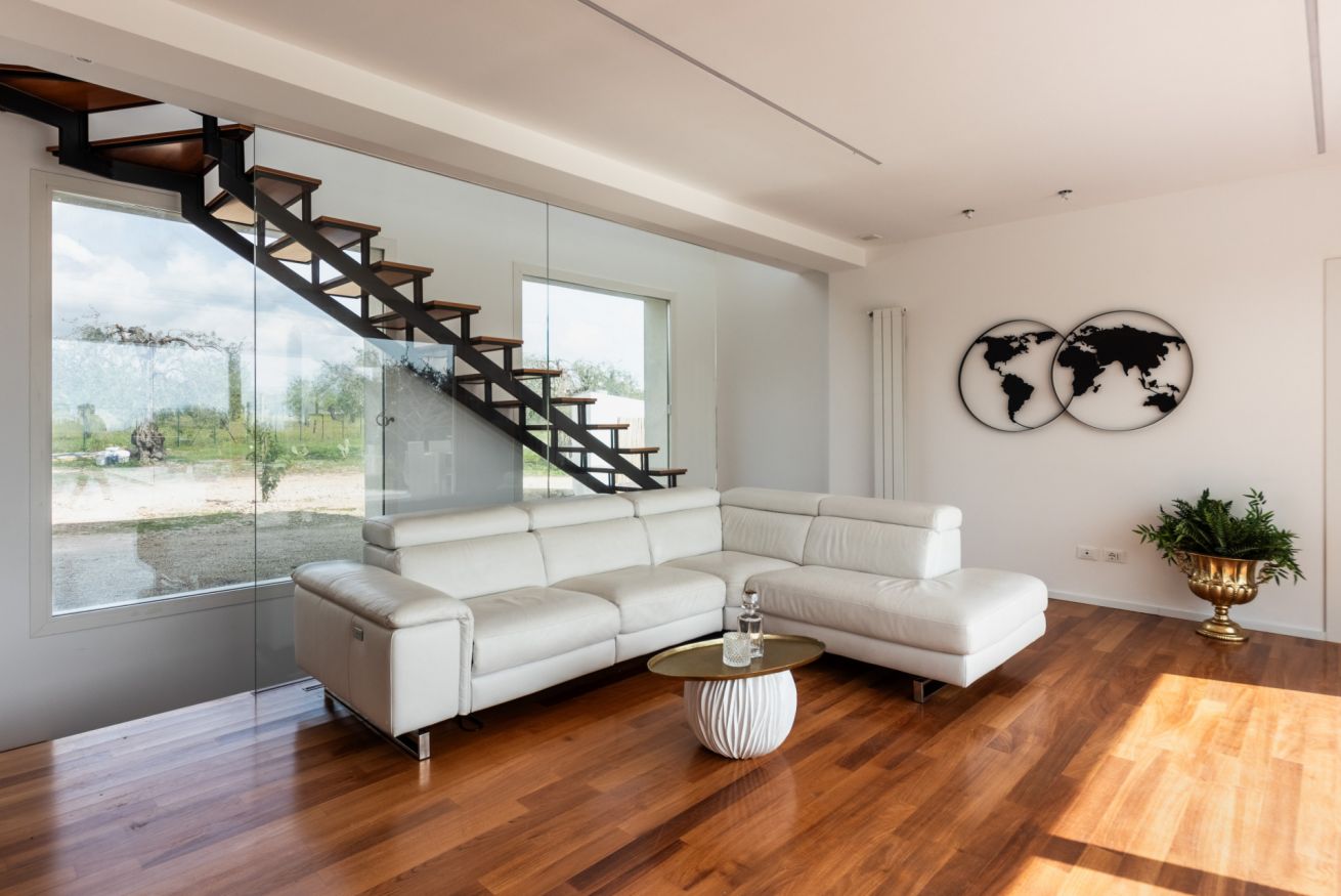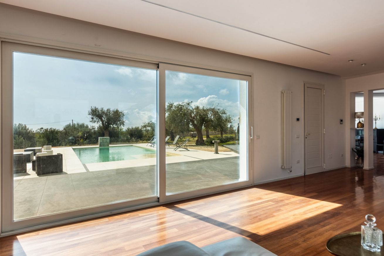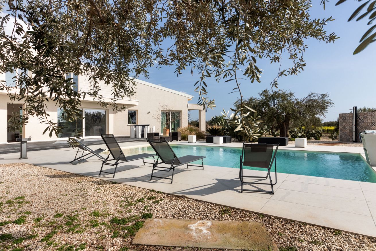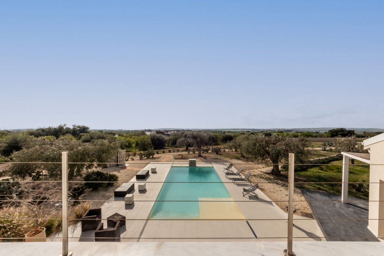 Pensata per garantire il massimo della privacy e del relax, la villa accoglie i suoi ospiti in ambienti ampi e luminosi, dove la luce naturale e il paesaggio circostante diventano parte integrante dell’esperienza. Le grandi aperture verso l’esterno regalano panorami suggestivi e creano una continuità fluida tra gli spazi interni, eleganti e raffinati, e la bellezza della natura mediterranea.