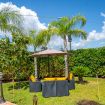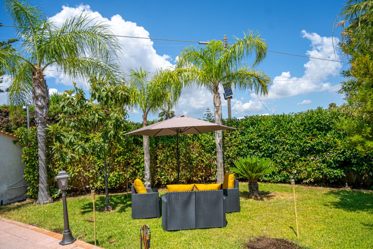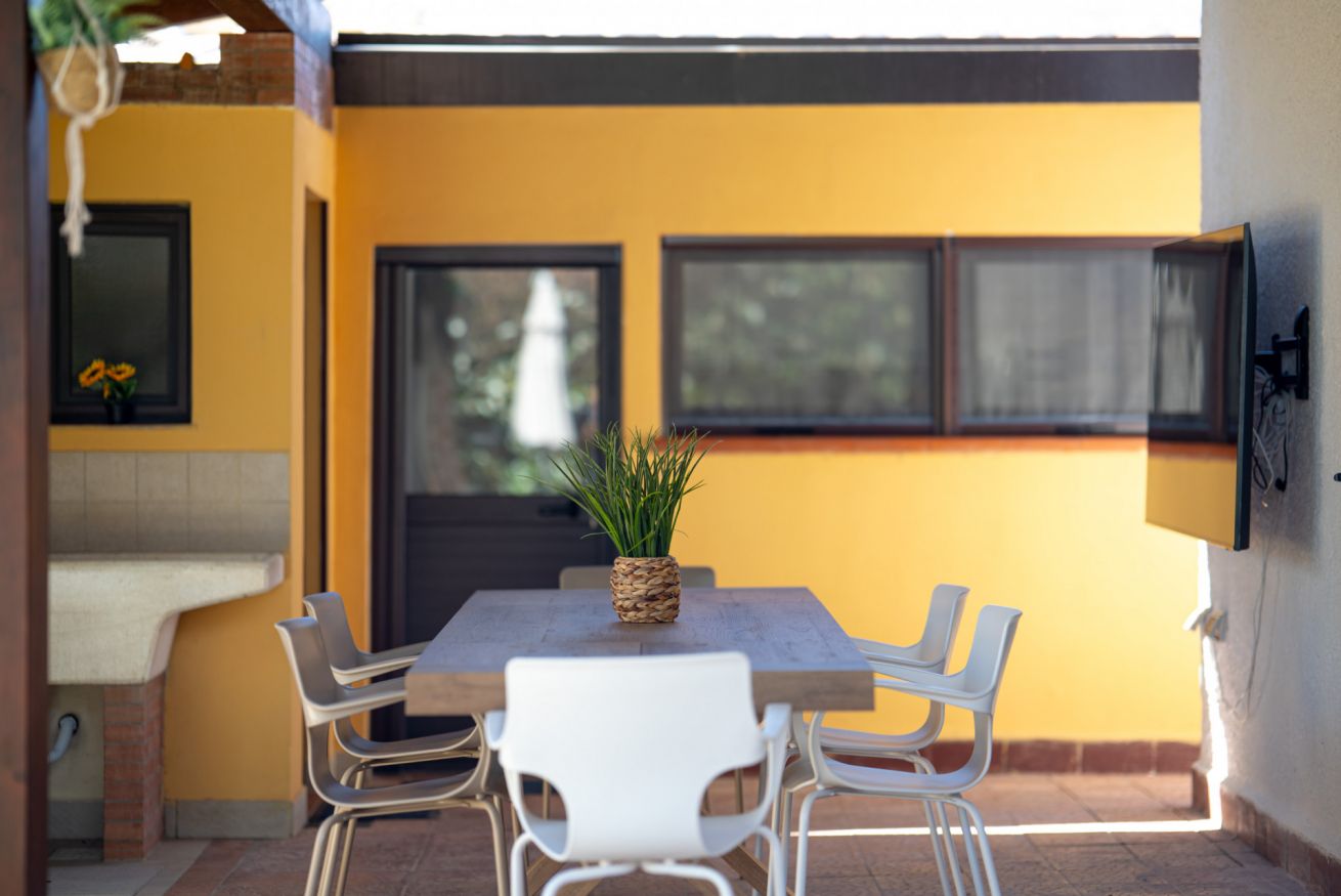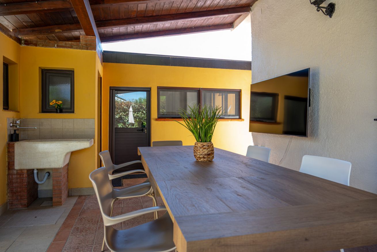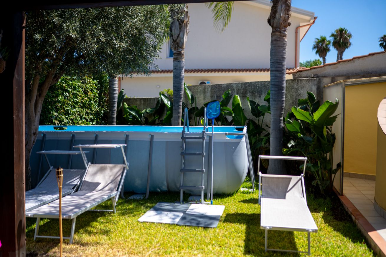 L’esterno offre un giardino privato attrezzato con piscina fuori terra, sdraio per il sole, barbecue e un’area dedicata ai pranzi all'aperto. La villetta garantisce il massimo comfort in ogni stagione grazie alla climatizzazione in tutti gli ambienti e alla connessione internet Wi-Fi.