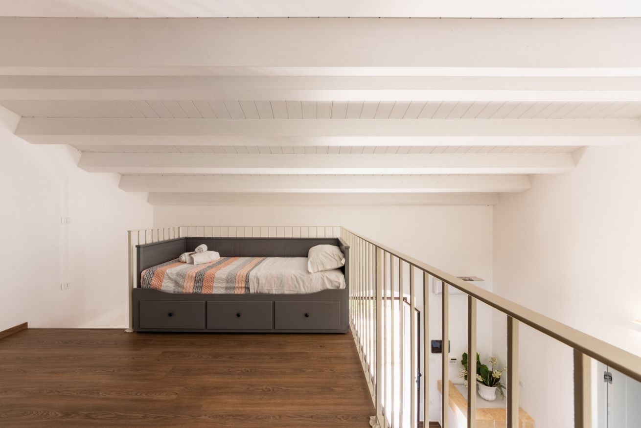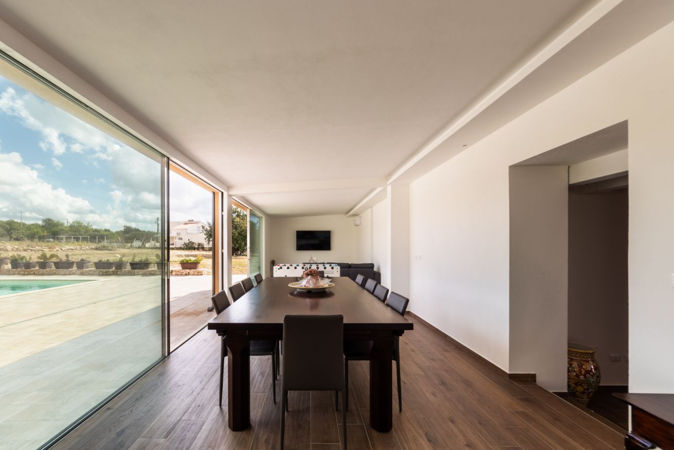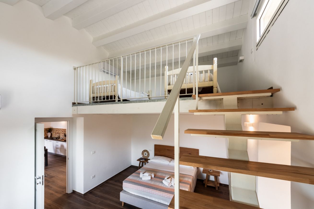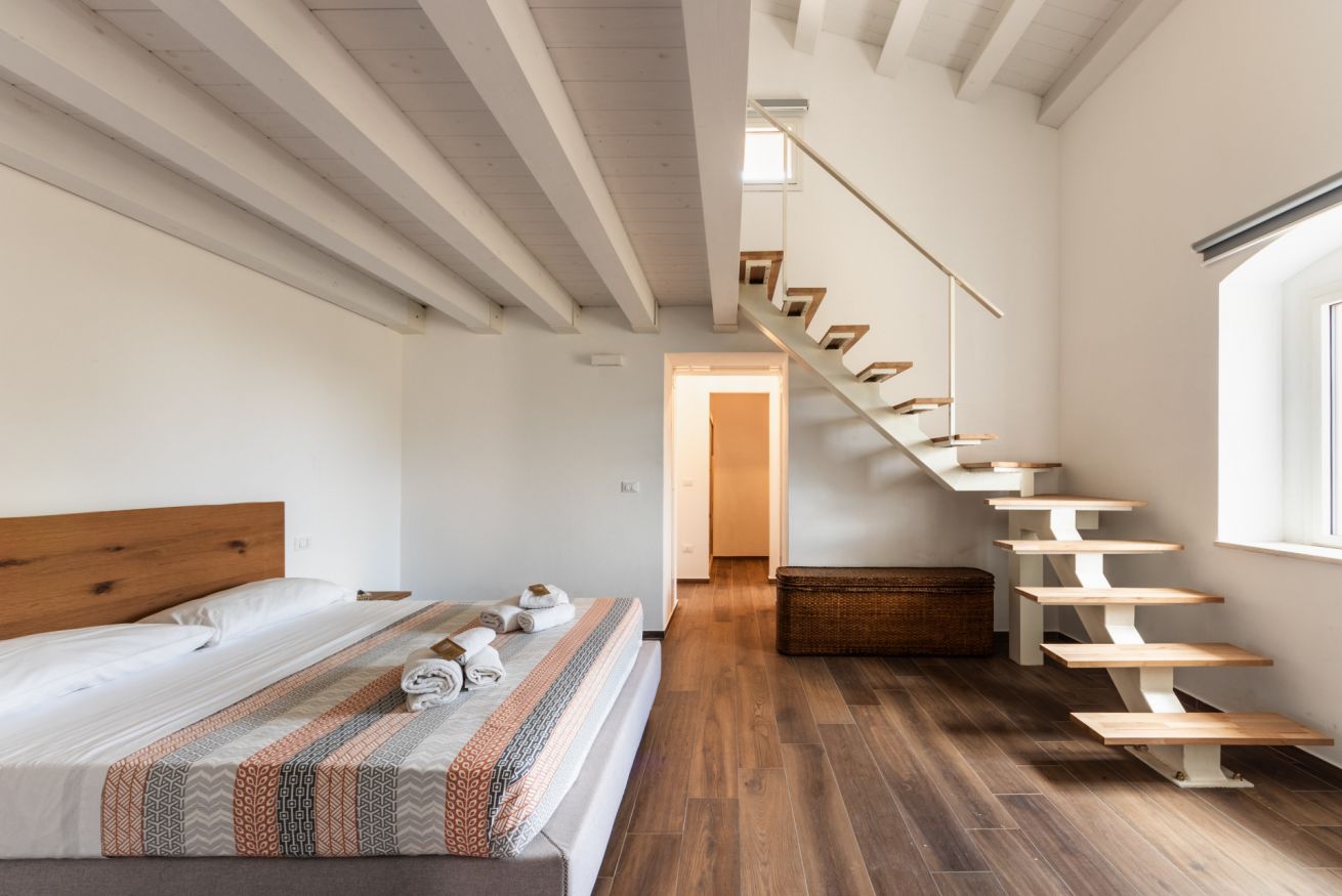 La villa offre interni eleganti e funzionali: una cucina attrezzata, con soppalco con divano letto matrimoniale; una camera da letto matrimoniale con soppalco con altri due letti singoli e bagno con doccia e sauna in camera; un ampio bagno in zona cucina, una zona living accogliente con grandi vetrate che si affacciano sulla zona piscina, una cucina attrezzata esterna. La veranda esterna coperta e la terrazza panoramica diventano veri e propri salotti all’aperto, ideali per cene sotto le stelle o momenti di relax immersi nel silenzio della natura.
