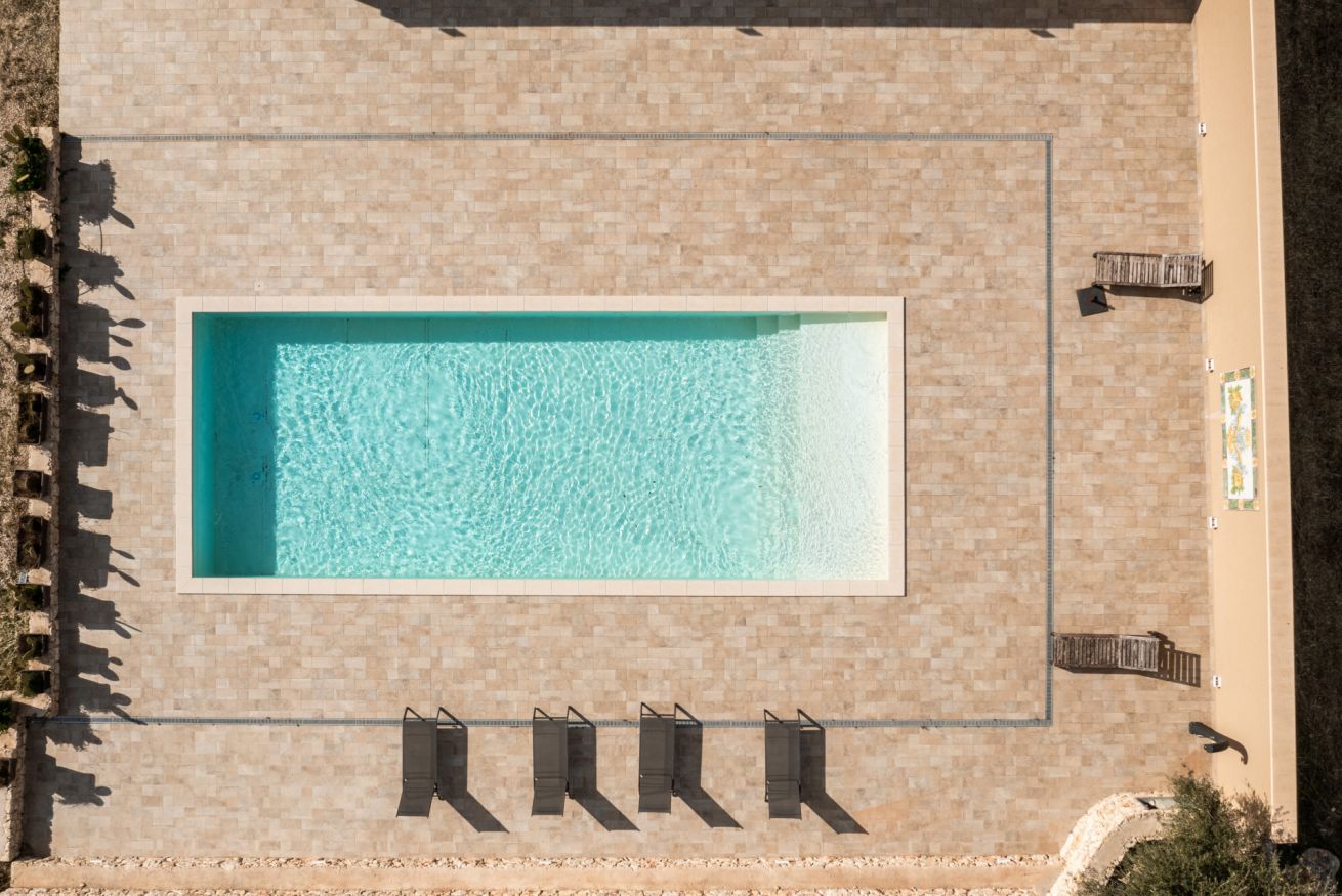 La proprietà si apre su un ampio terreno panoramico, che accoglie una scenografica piscina privata perfetta per rinfrescarsi nelle giornate estive o per godere tramonti indimenticabili.